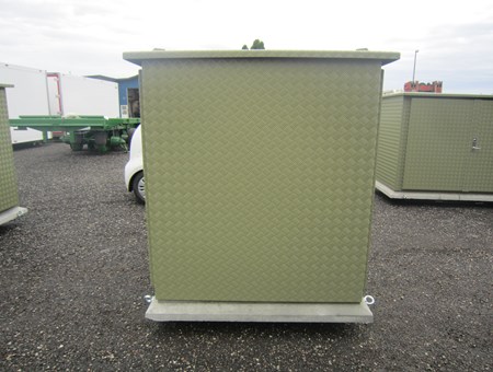 Denne råvandsstation i pulverlakeret søvandsbestadigt aluminium leveres med ét eller to sæt dobbeltdøre (ca. 1400x1600mm). Huset har en alu-bundramme som fastmonteres med indv. splitter i begge ender på beton bundpladen. Som standard måler betonen udv. 1200x1800mm eller 1300x2100mm. Huset har tætning, 30mm skumisolering, 4 stk. løfteøjer, samt låsekasse for cylinderlås (låsecylinder er byggeherre lev.). Teknikskabet kan desuden laves, så det kan monteres på kundens egen betonplade eller -dæk, samt på specialmål efter aftale. Hver levering tilpasses det enkelte udbud.